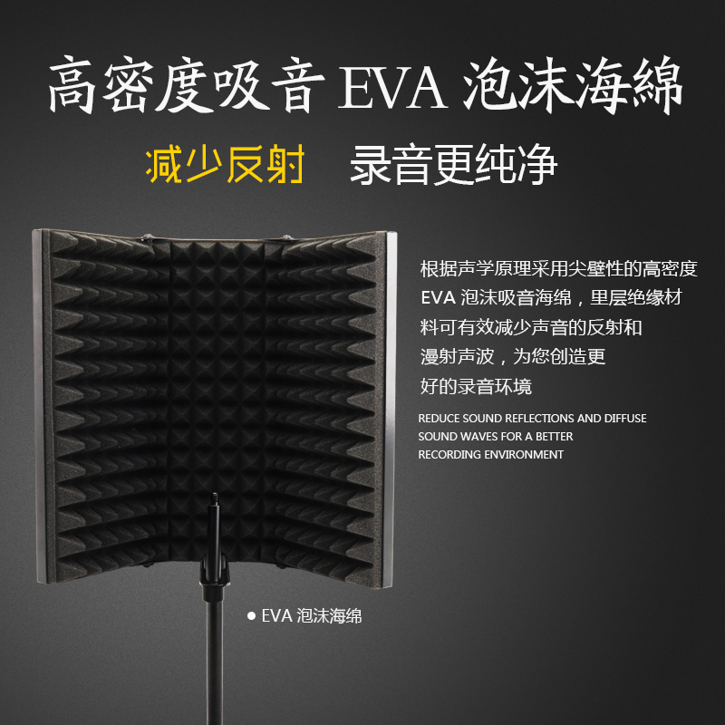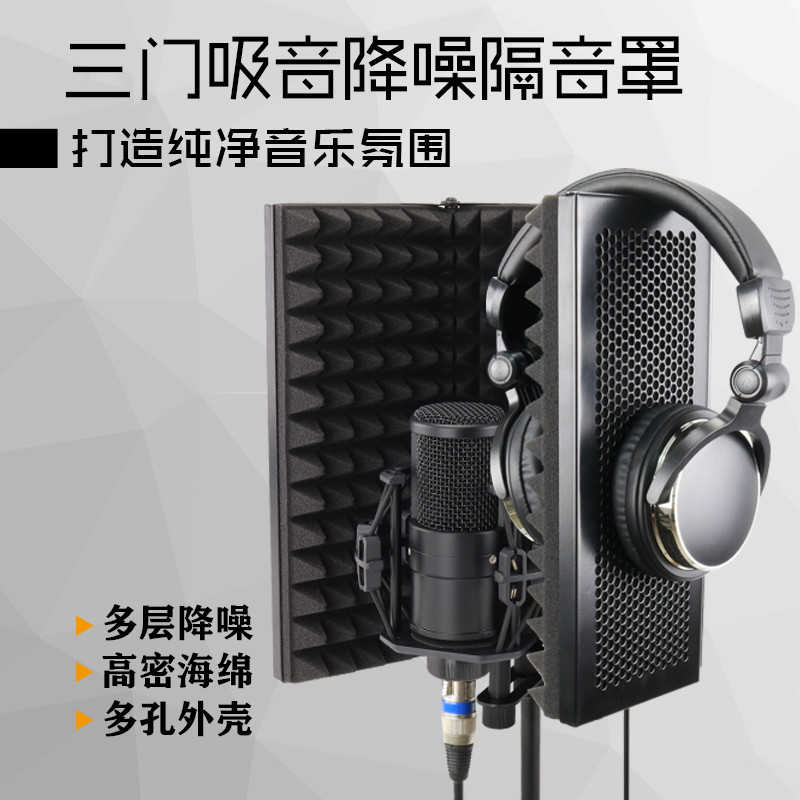Capacitive microphone recording shed sound absorbing screen microphone soundproof screen windproof hood anti-spray mesh noise reduction plate 3 doors