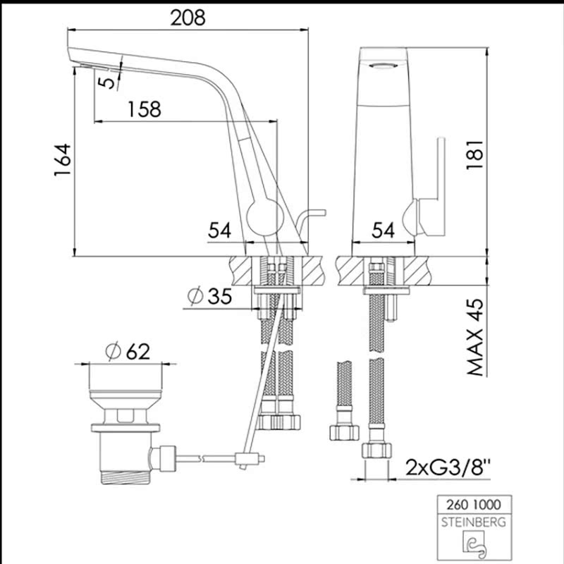 Chrome plated with water falling 2601000 chrome plated without falling into the water 2601010 black with water falling 2601000S black without falling into the water 2601010S1 drawing with water down 26