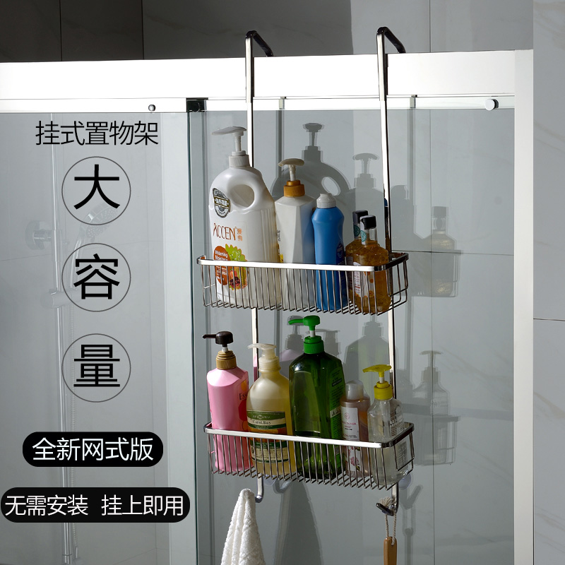 Stainless steel shower room hanger bathroom hanging basket powder room shower room rack storage wall-mounted free punch