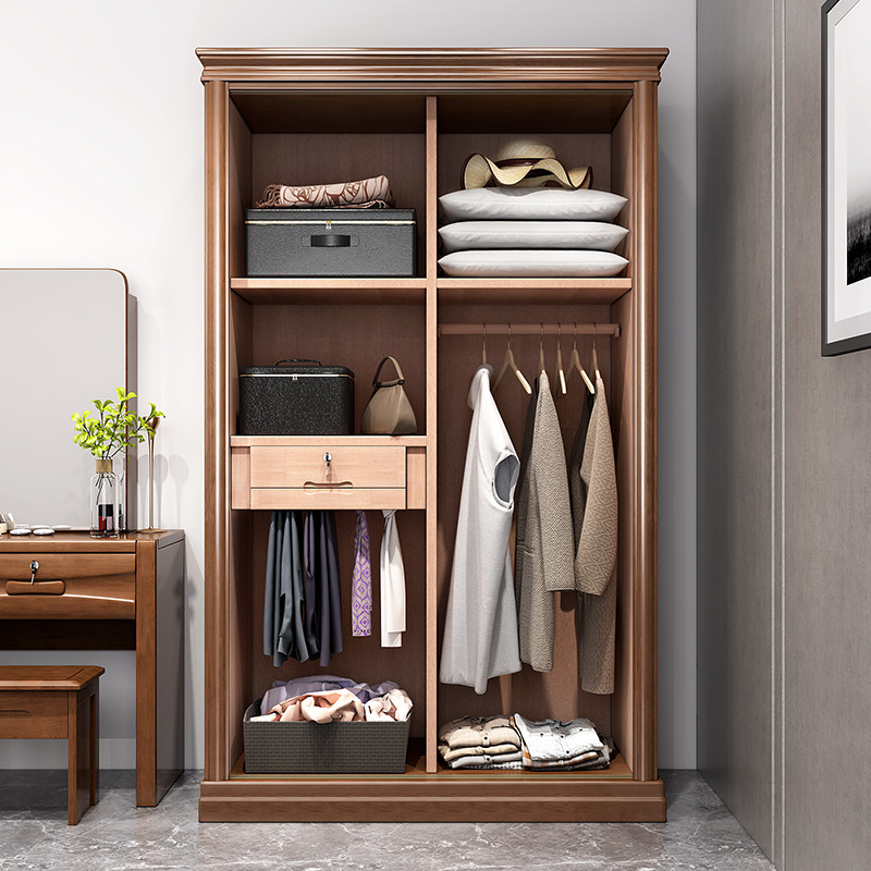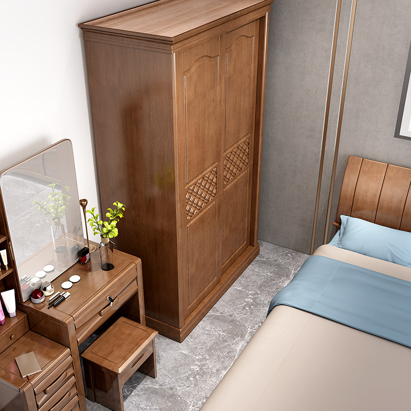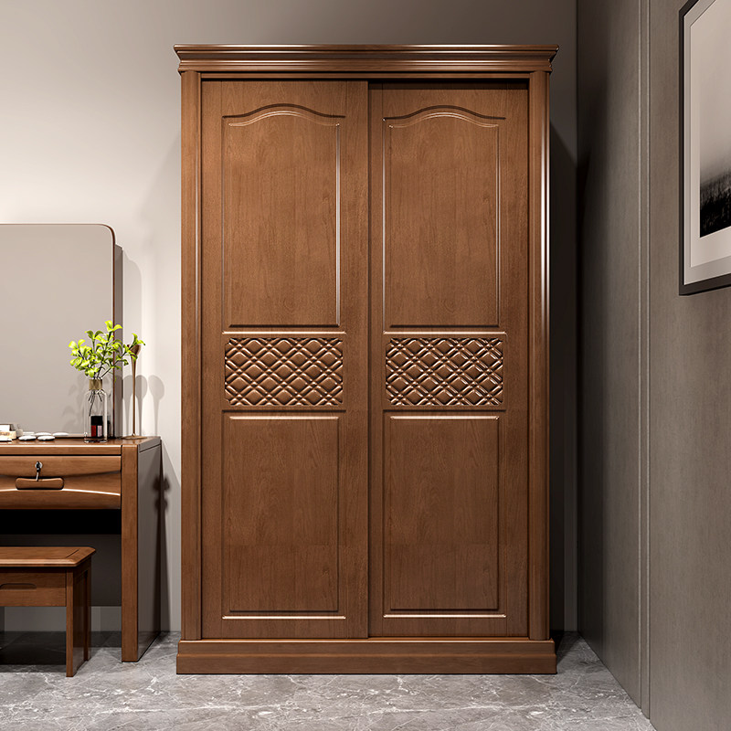 Chinese-style solid wood wardrobe two-door simple modern economical 234 sliding door large wardrobe bedroom furniture
