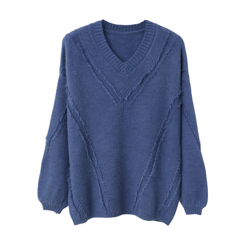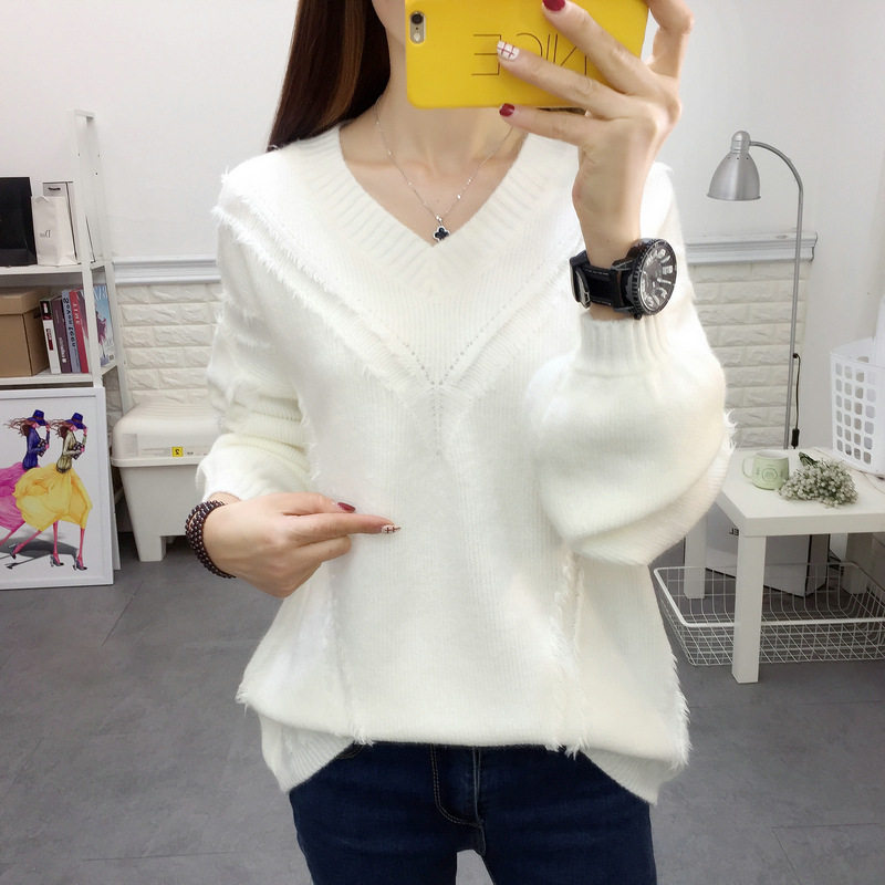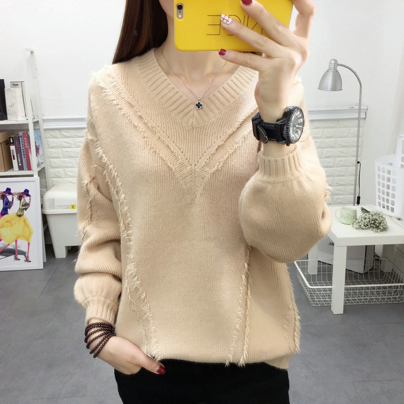 Lazy wind V-neck temperament female pullover net red sweater Korean version loose thin wild Western style knitted sweater top