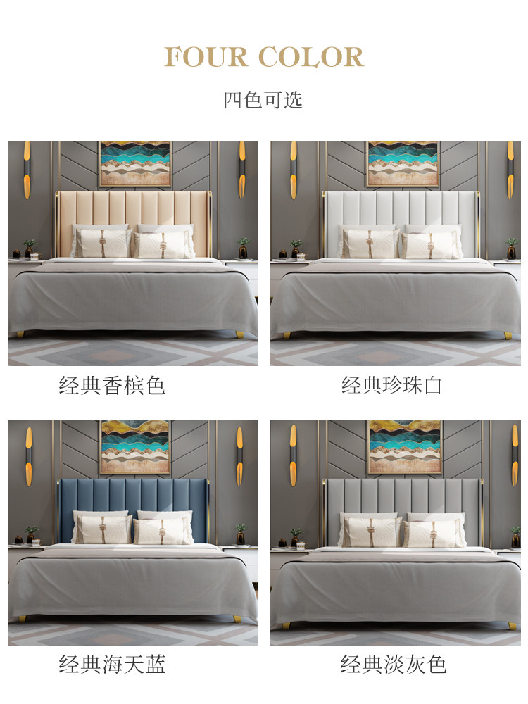 Light luxury brush bed red real bed double bed 1 8m 1 5 m master wedding bed after modern minimal Italian bed
