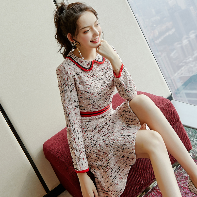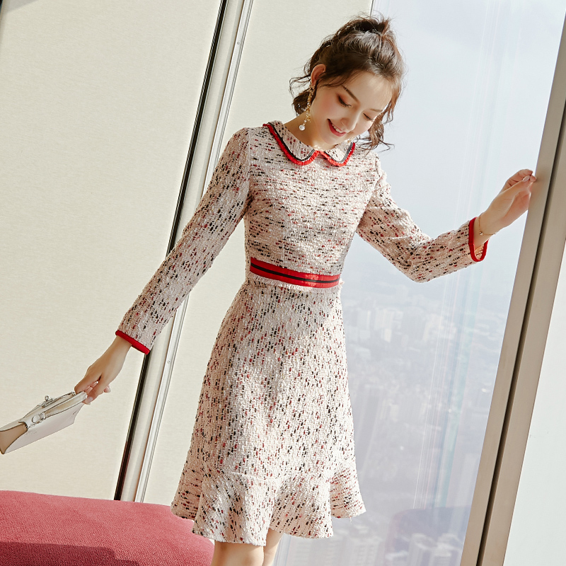 Skirt women's autumn 2021 new long-sleeved waist thin Western style socialite temperament fishtail wool dress