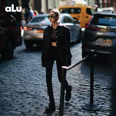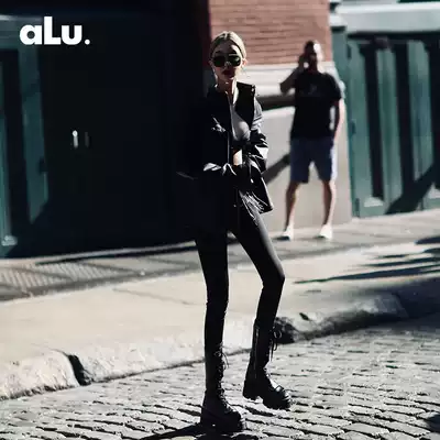 ALUONLINESHOP high quality elastic fabric slim high wear black pants