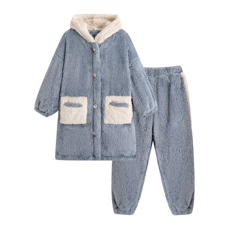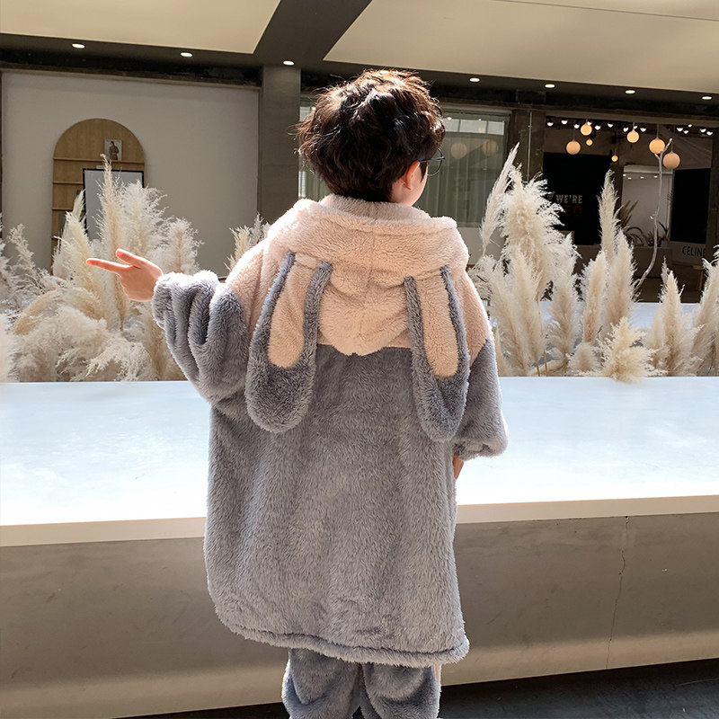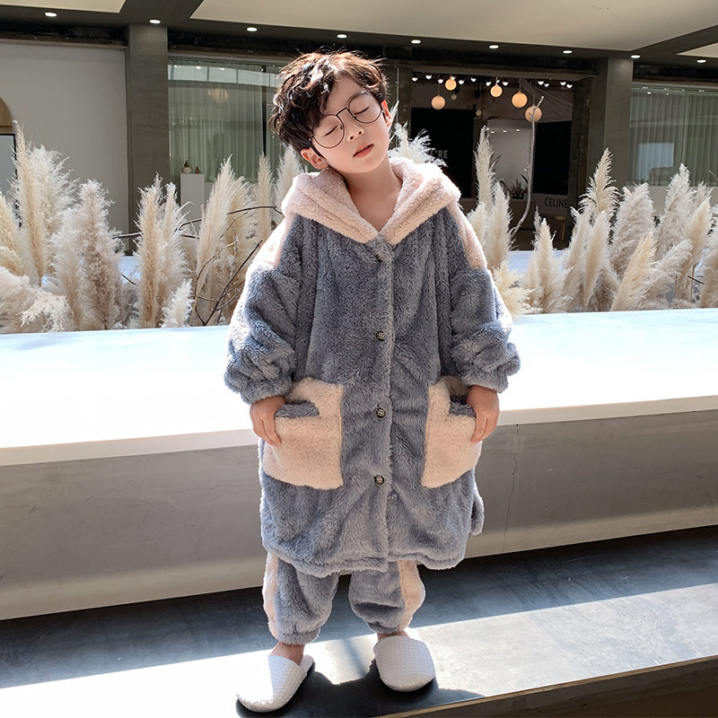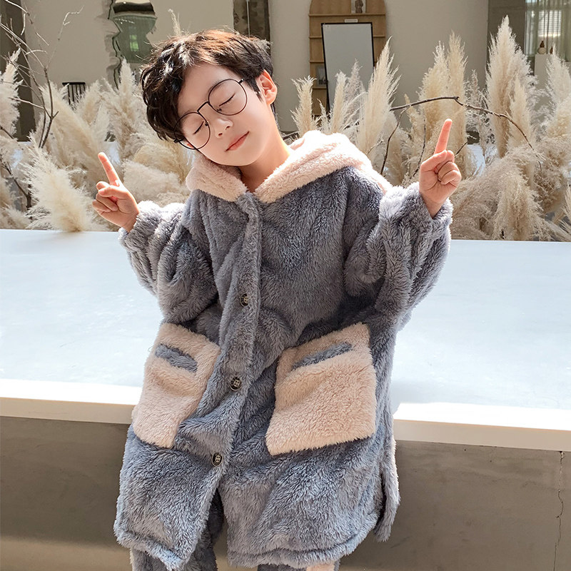 Children's pajamas autumn and winter flannel medium big boy little boy long version thickened coral fleece boy's home clothes winter