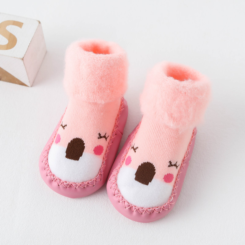 Baby shoes and socks soft bottom non-slip autumn and winter thickening and fleece warm socks cover newborn baby toddler socks shoes floor socks