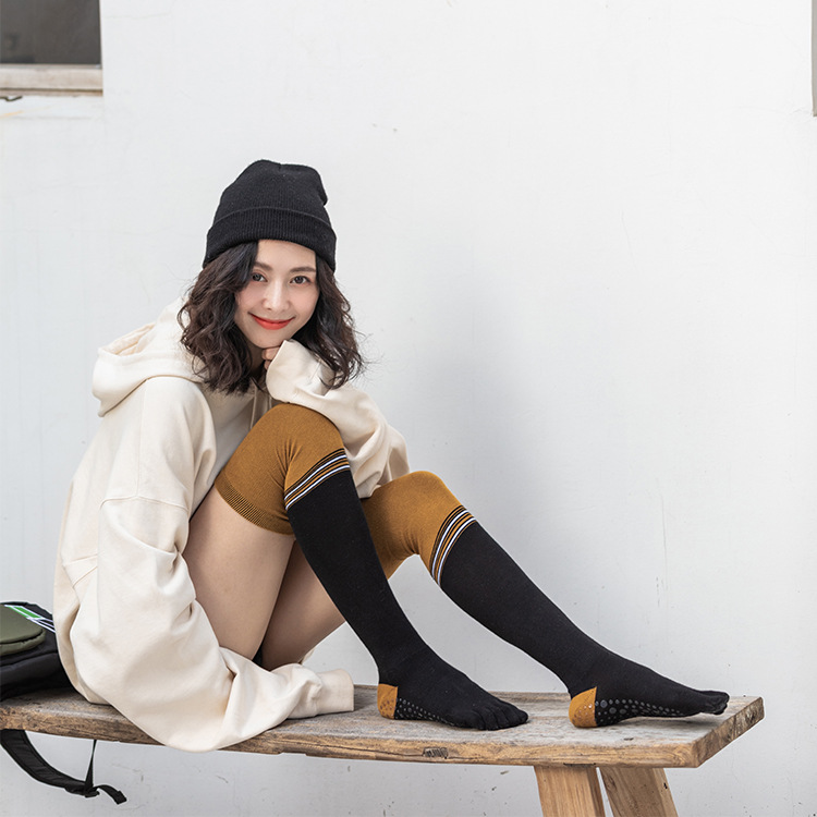 Yoga socks long tube professional yoga socks Long tube Pilates yoga over the knee non-slip five-finger socks Autumn and winter cotton