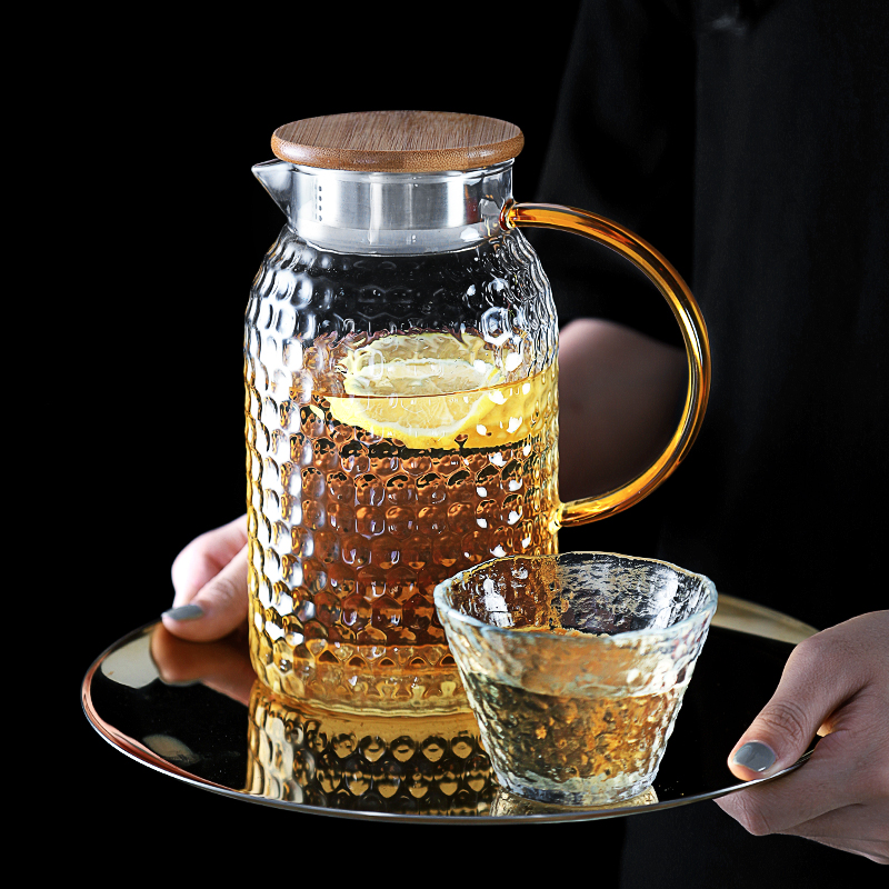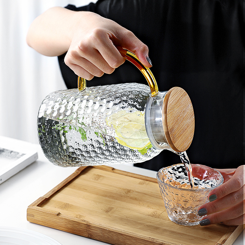 Home High Temperature Resistant Hammer Veins Glass Cold Water Jug Dry Cool White Open Water Super Cool Tea Pot Large Capacity Ice Water Cup Suit