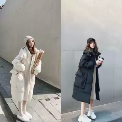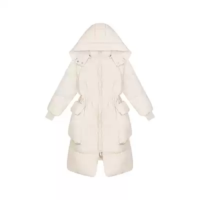 Mrs. Qian White down jacket women's long version of knee bread jacket white duck down jacket