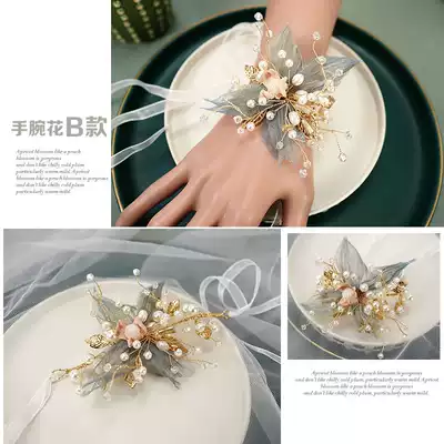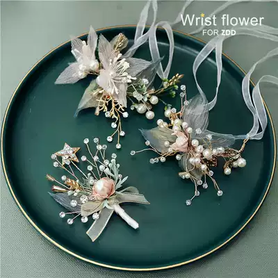 ins Sen department super fairy beauty Bride wrist flower Groom corsage silk yarn bridesmaid hand flower children show tied flower bracelet