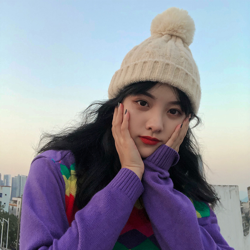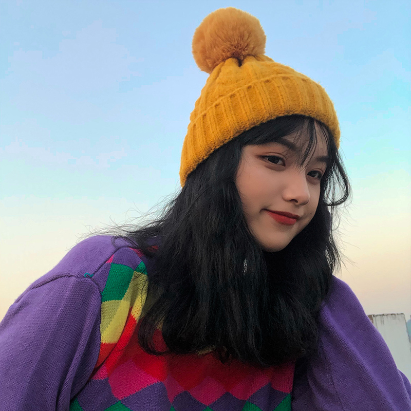 Aijia micro hat women autumn winter Korean version of the woolen hat hair ball thickened versatile Japanese net red warm knit hat