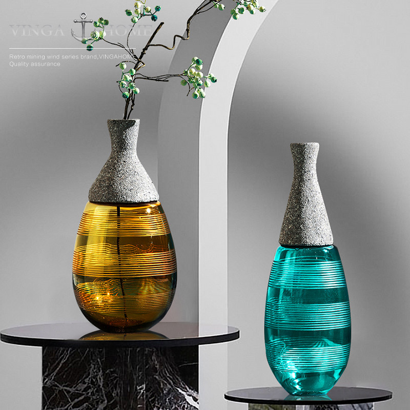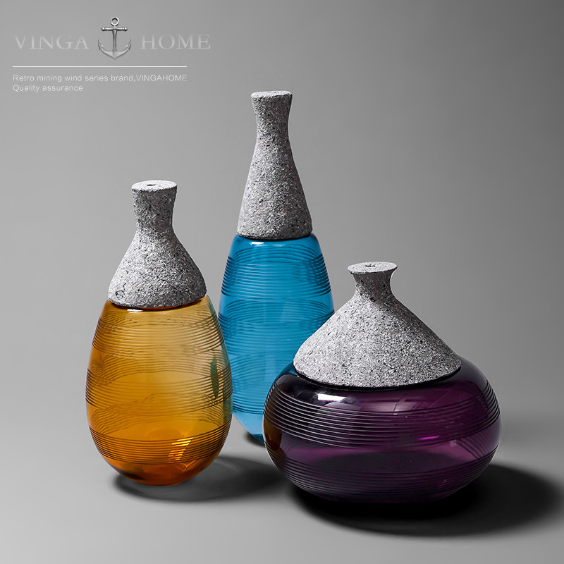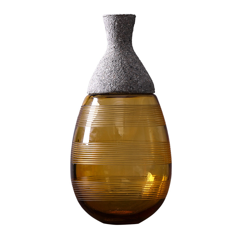 Nordic creative glass small mouth vase dried flower flower arrangement living room TV cabinet decoration home soft decoration decoration