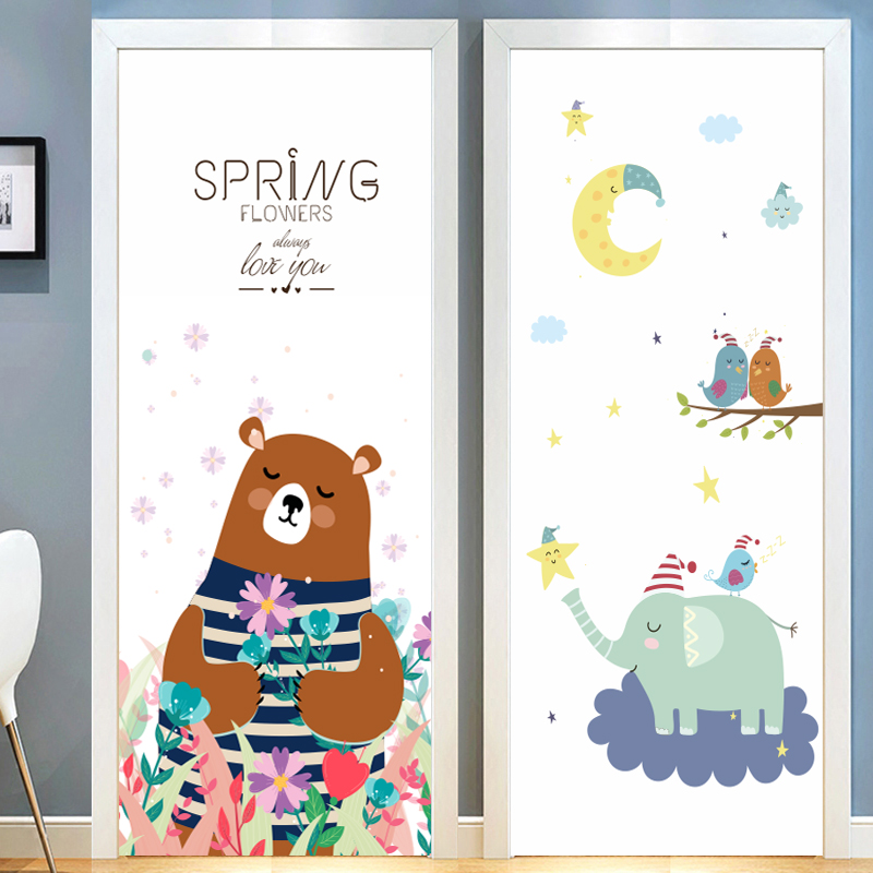 Children's Room Cartoon Dinosaur Dinner Dinosaur Night Sleeping Bear Whole Bag Door Stickers Kindergarten Renovated Door Applid waterproof self-adhesive