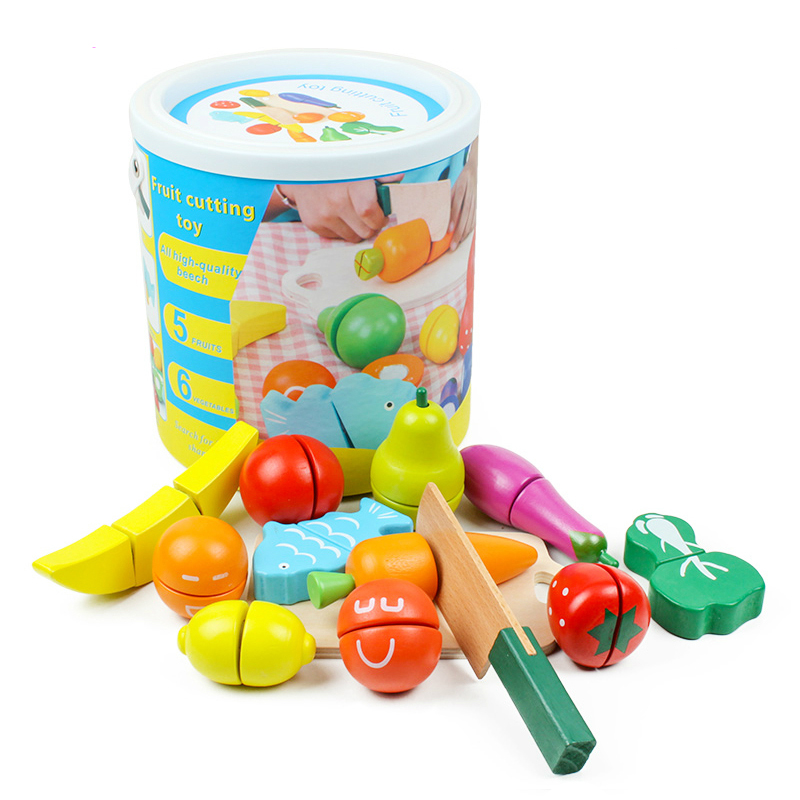 Wooden fruits and vegetables hook and loop cut to see le cut fruits play home wine kitchen children's educational toys boys and girls
