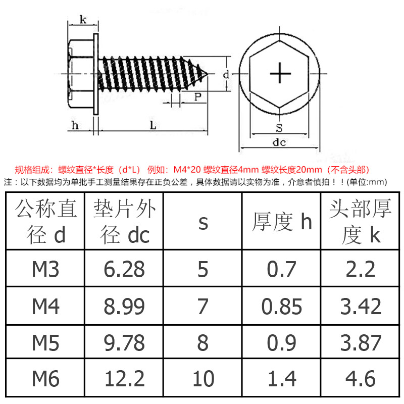 304 stainless steel cross recessed hexagonal flange self-tapping screw with pad self-tapping wood screw M3M4M5M6