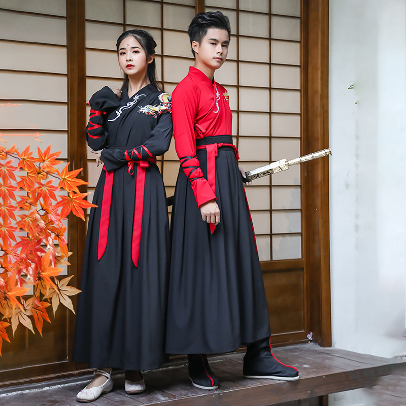 Shawl Dragon Woman Red Black Suit) Shawl Dragon Men's All-black Suit Shawl Dragon Male Red Black Suit Shawl Dragon Woman Full Black Suit Shawl Dragon Male Black Red Dress Cape With Black Red Dress White Two