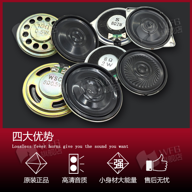 28mm diameter horn 8 ohms 2 watts (1 piece) 35 diameter horns 4 ohms 3 watts (1 piece) 40mm diameter horns 8 ohms 2 watts (1 piece) 40 diameter horns 4 ohms