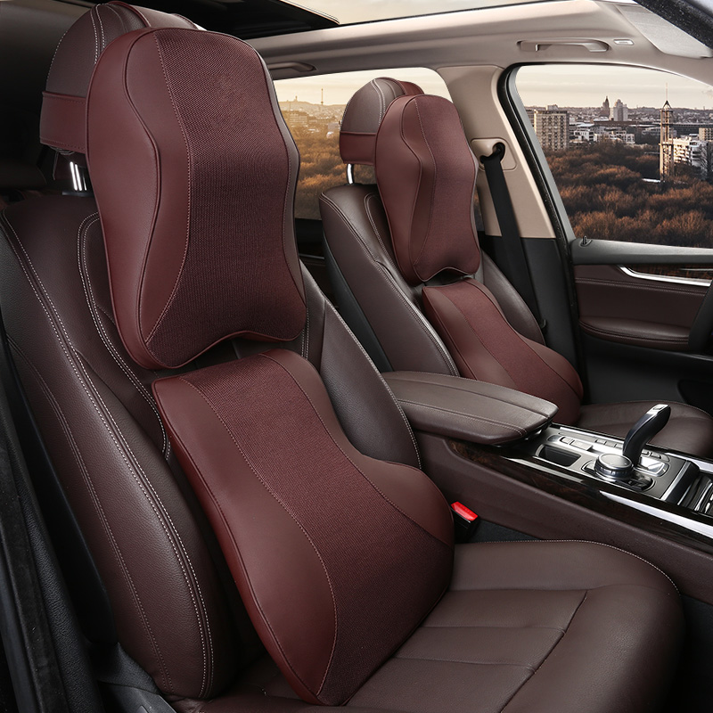 Black head pillow curry head pillow wine red headrests beige headrest black waist close to curry waist close to wine red waist leans on beige waist leans on head pillow waist leans back (message color)