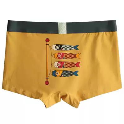 Original Japanese style koi flag in the painting pure cotton couple underwear men's and women's underwear mid-waist couple shorts Tanabata gift