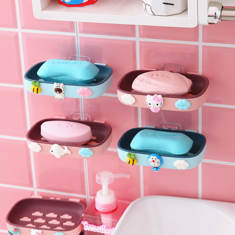 Creative personality cartoon cute soap box frame free hole wall mounted asphalt wall hanging wall soap shelf