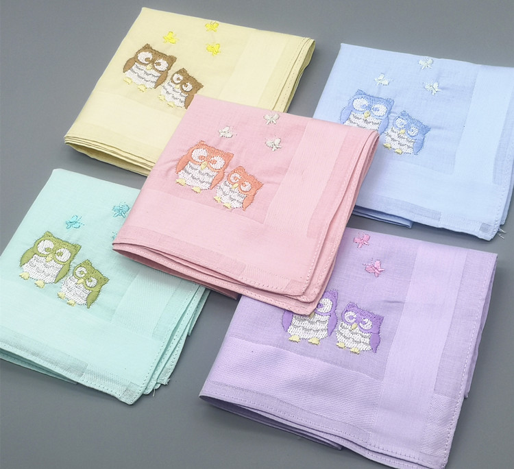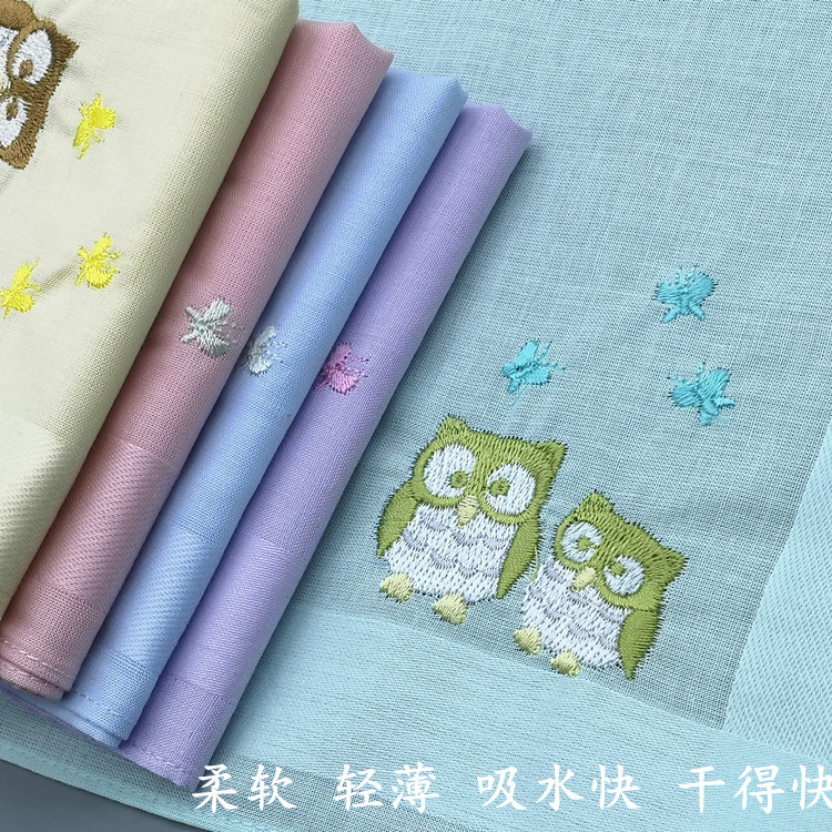 5 handkerboard ladies pure cotton embroidered all-cotton handkeratchild pure colour vegetarian color soft and thin and sweat owl