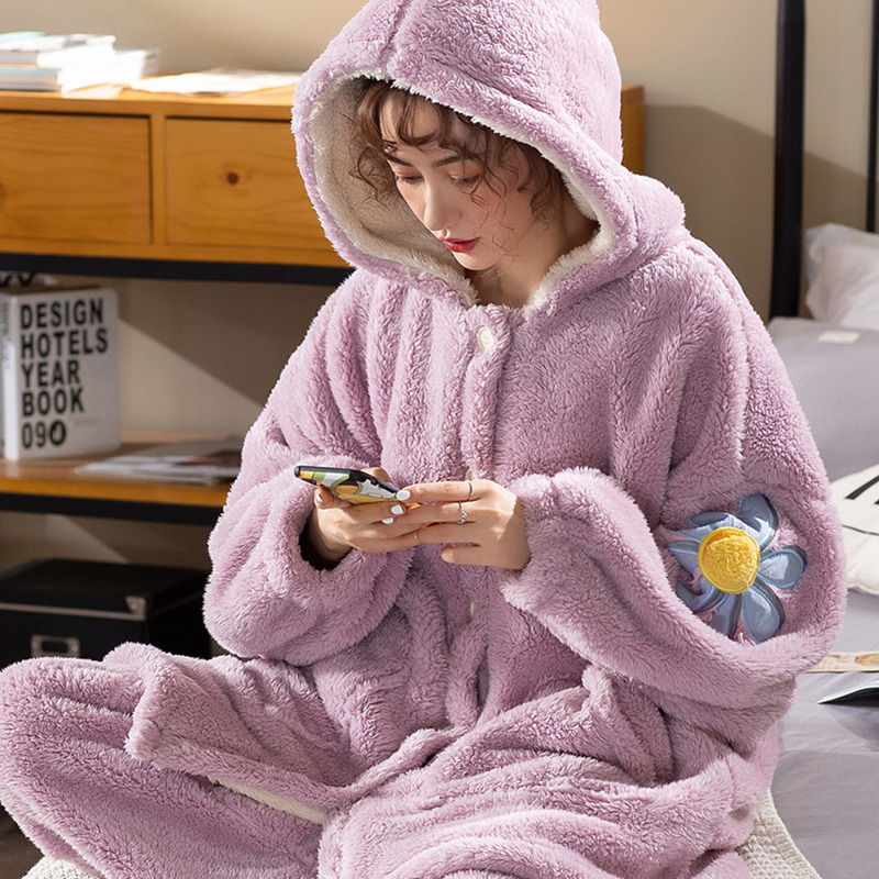 Daisy pyjamas women's autumn and winter coral suede sleeping can be worn out with pocket lamb wool students's casual suit
