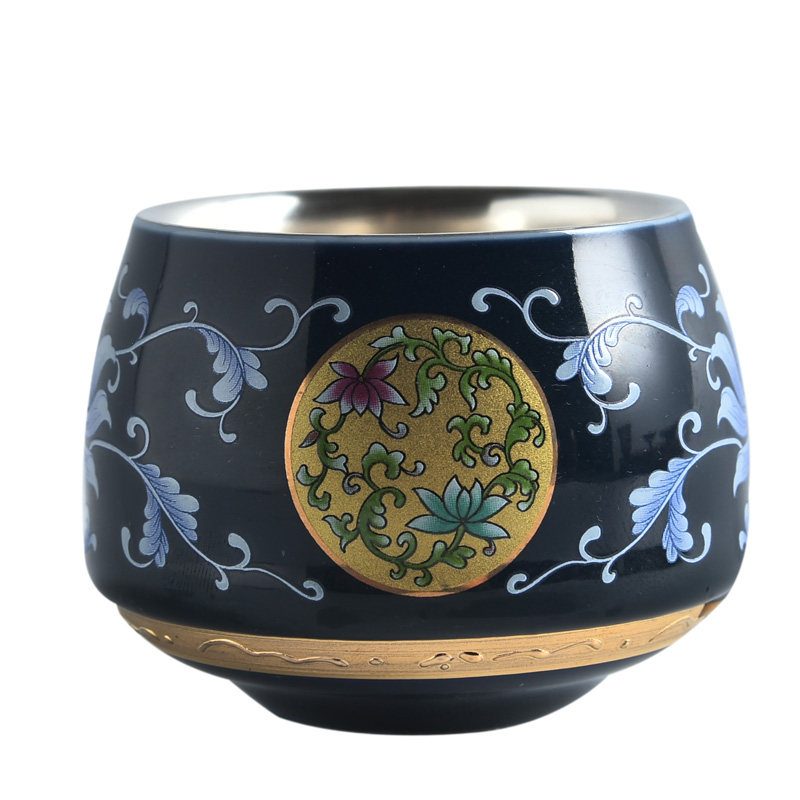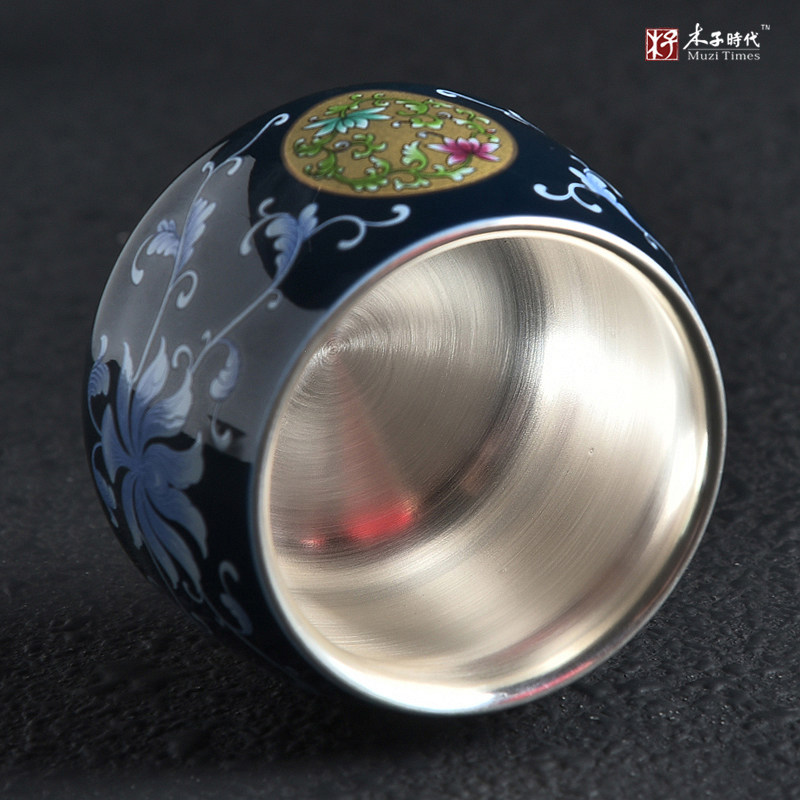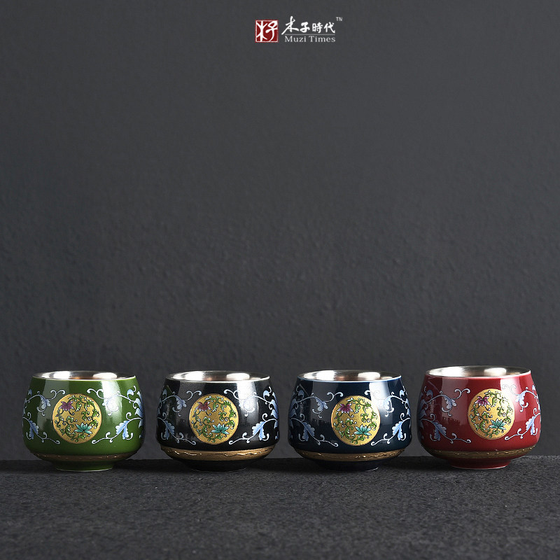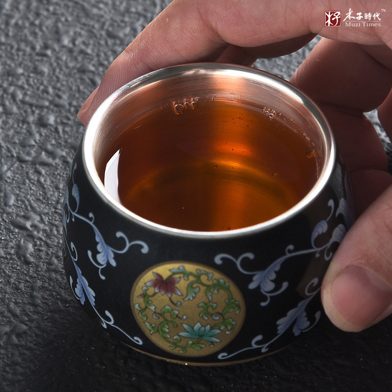 999 sterling silver ceramic teacup cup Gilt silver teacup Master cup Tea cup Tea cup Single cup tea cup Kung Fu tea set