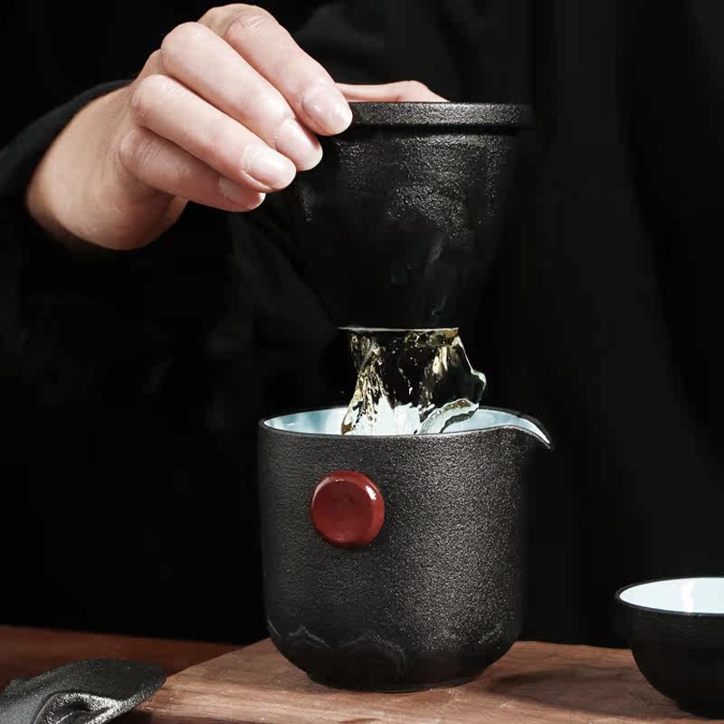 Su Ming Japanese black pottery quick cup One pot one two three four cups Portable travel single ceramic tea set custom LOGO