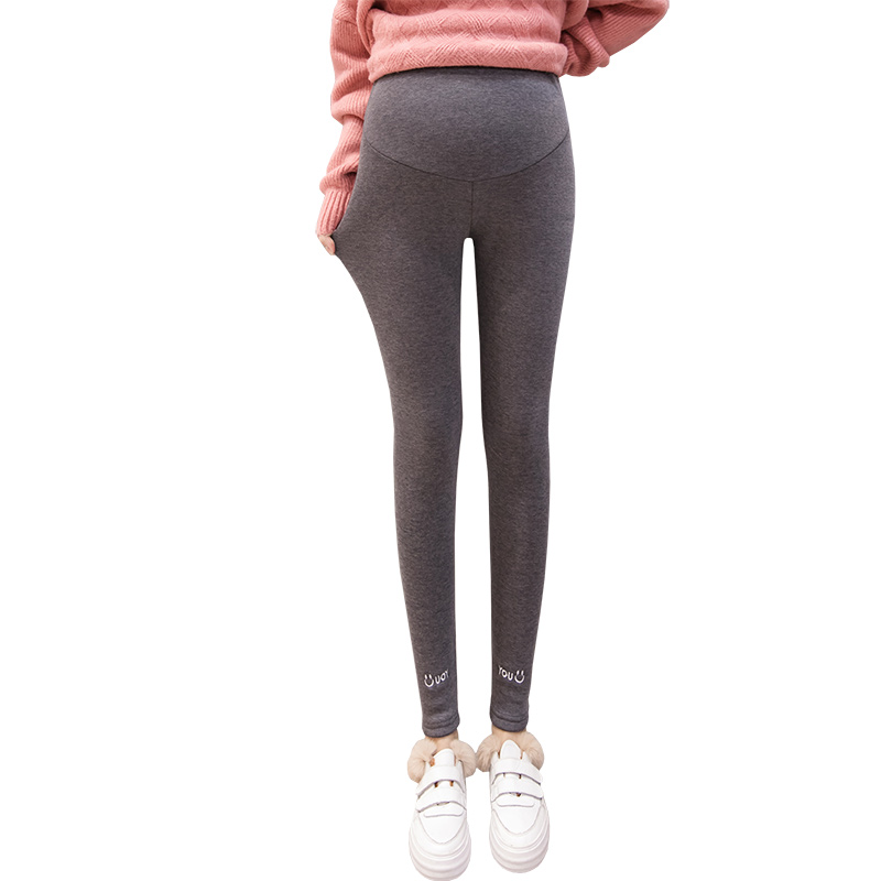 Autumn and winter clothes plus fat plus size 200 catties plus velvet warm pregnant women's leggings fashionable outer wear embroidery belly trousers