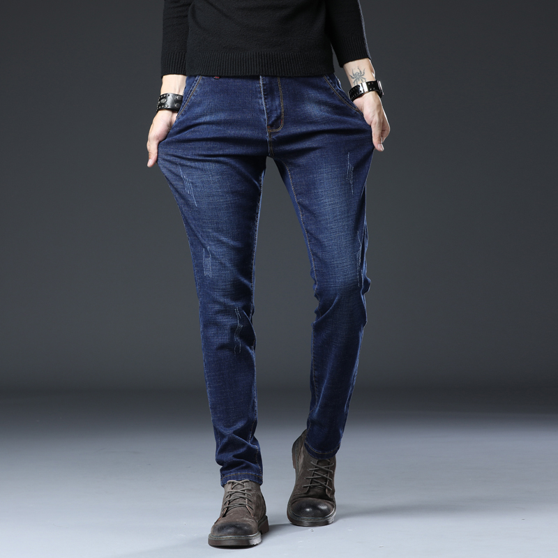 Jeans Men's Korean version trendy spring autumn new men's elastic casual workout small feet long pants male tide cards