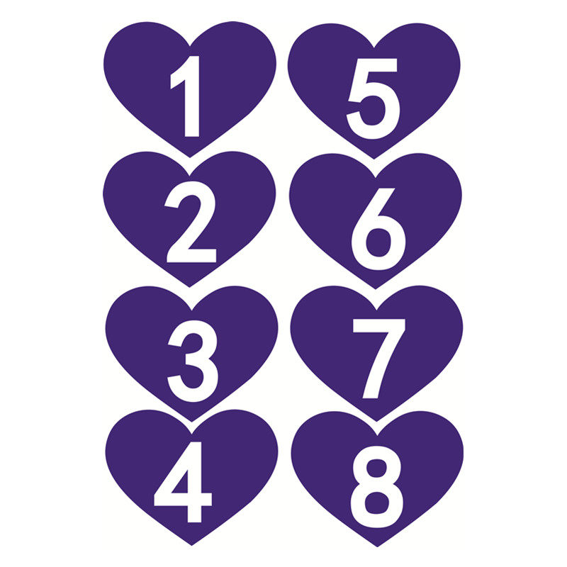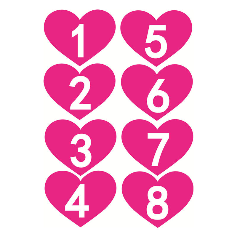 Customize heart-shaped 7x9cm digital adhesive number adhesive sticker label number digital sticker PVC waterproof label
