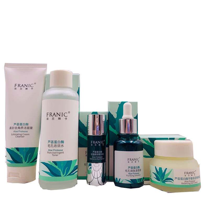 Franic Aloe Protease Set Exfoliating Cleansing Pore Conditioning Water Eye Essence Refreshing Gel Cream