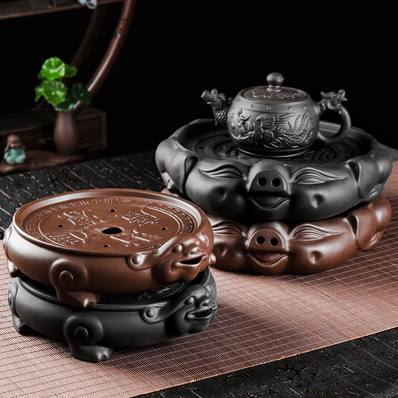 Purple Sands Tea Terrace Tea Sea Affair smooth pig tea tray Cairou Property Guangjin Dried Bubble tray storage water type Gongfu tea furniture