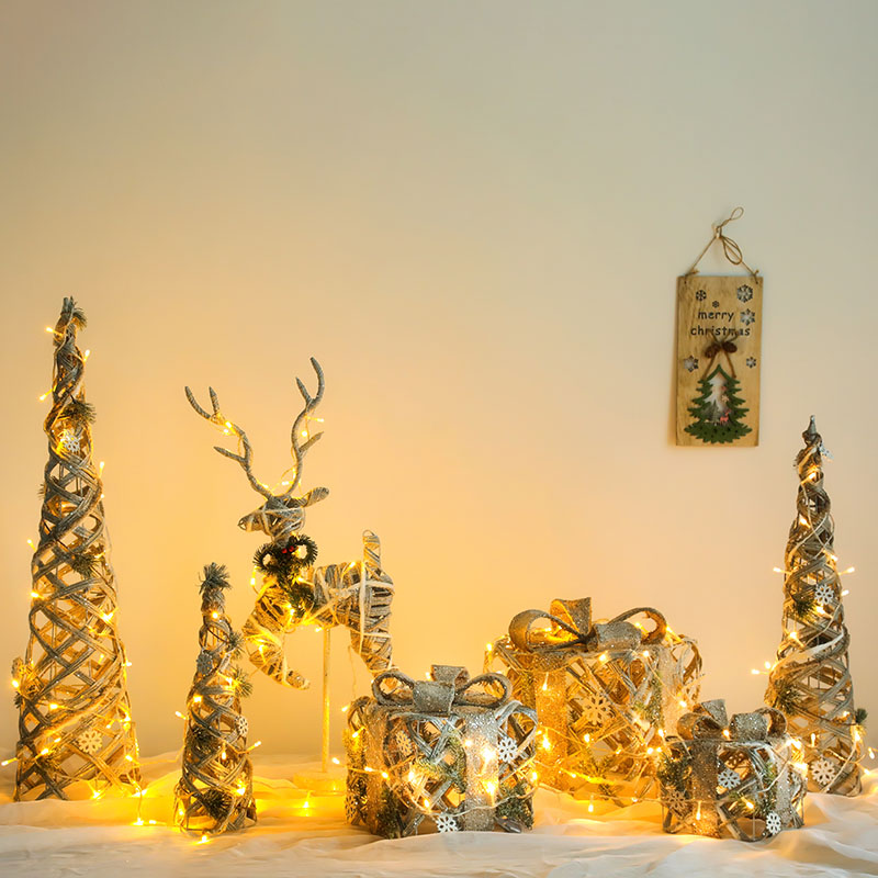 Hromeo Christmas Wrought Iron gift box Gift bag Three-piece Set Christmas Deer ornaments Shopping Mall Hotel scene decoration
