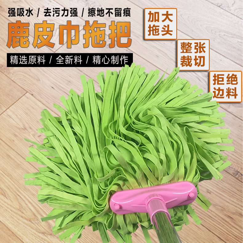 Flat head deerskin towel mop wide head chicken skin mop Old-fashioned household hairless mop strong water absorption large area dedicated