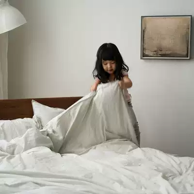Mountain hidden creation bedding four-piece set Naked sleep skin-friendly pure cotton and hemp blend washed striped bed single quilt cover bed Li