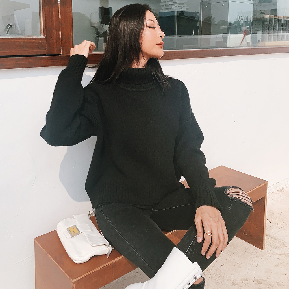 ITSNIKAR black necklace sweater is loose to wear ultra-thick warm-headed knitting knitting coat