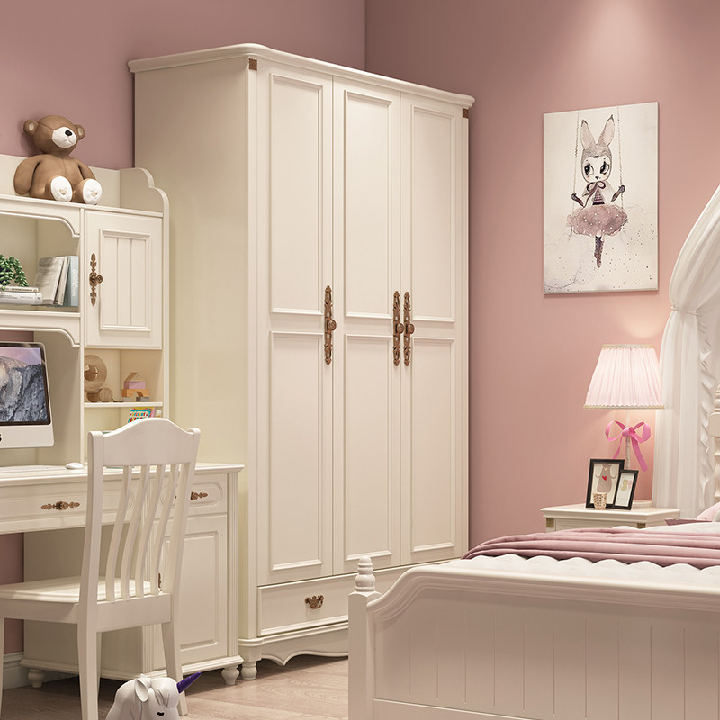 American children's three-door wardrobe storage cabinet Girl small wardrobe Children's room Boy wooden two-door wardrobe White