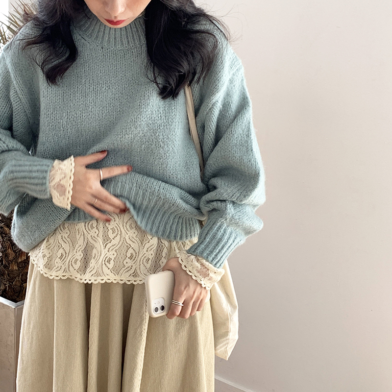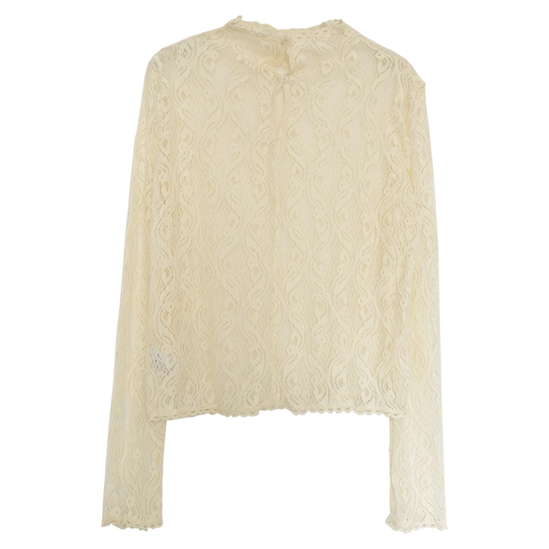 yesroom21 summer new Korean version retro lady lace flocking perspective thin folding shirt base shirt