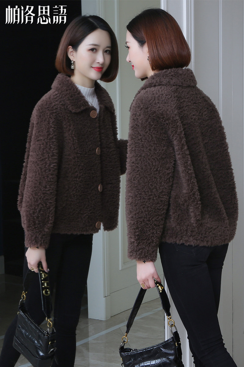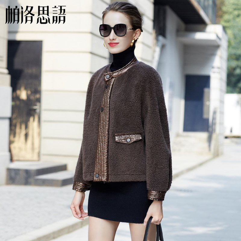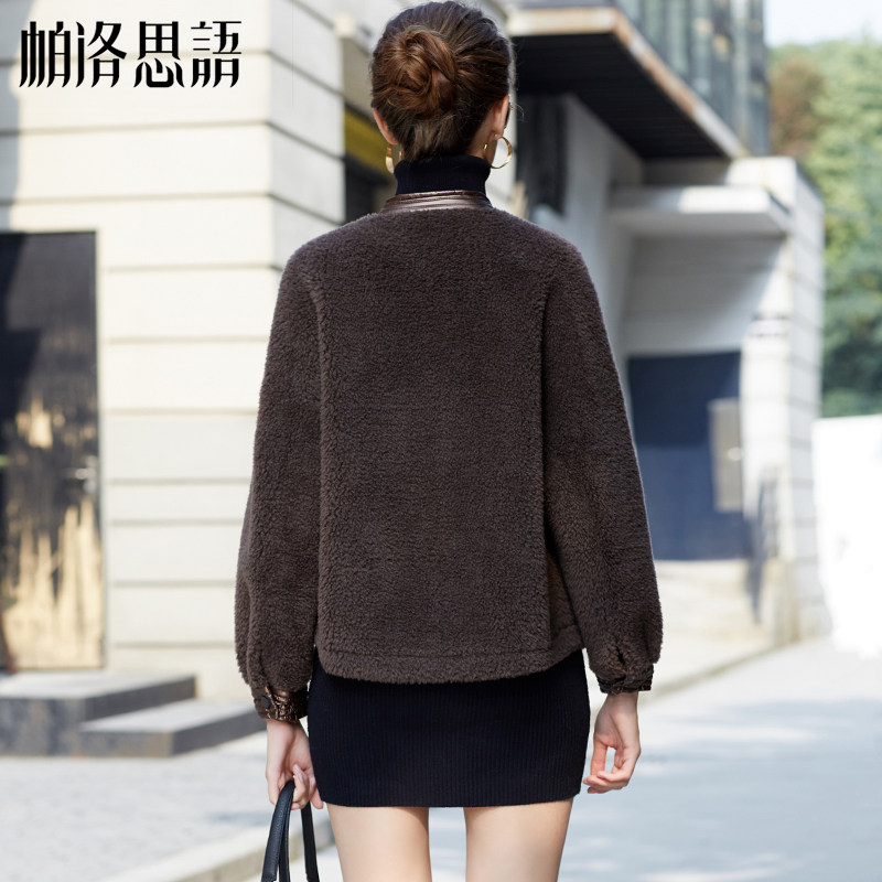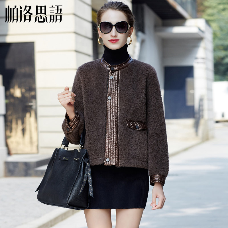 Grain goat cut down big coat woman short section 2021 autumn winter new standout collar lamb fur integrated leather grass jacket