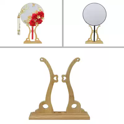 Bride fan frame black antique classical bracket round fan long handle fan holder base Chinese style palace fan group fan frame