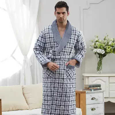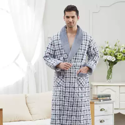 Nightgown Men's winter inner and outer cotton padded men's nightgown three-layer thick padded men's bathrobe extended men's cotton robe