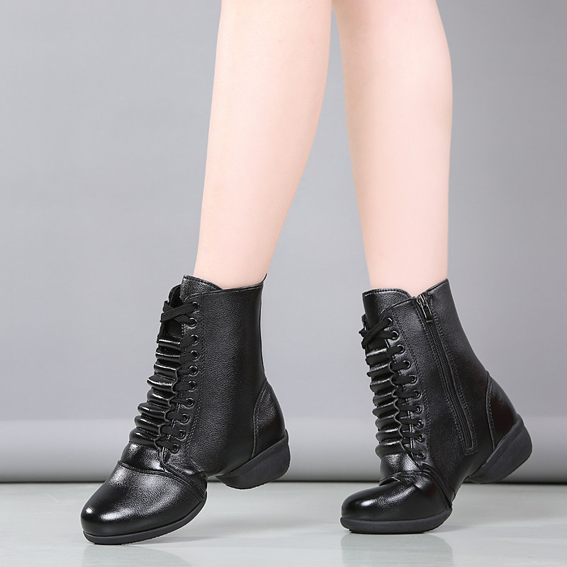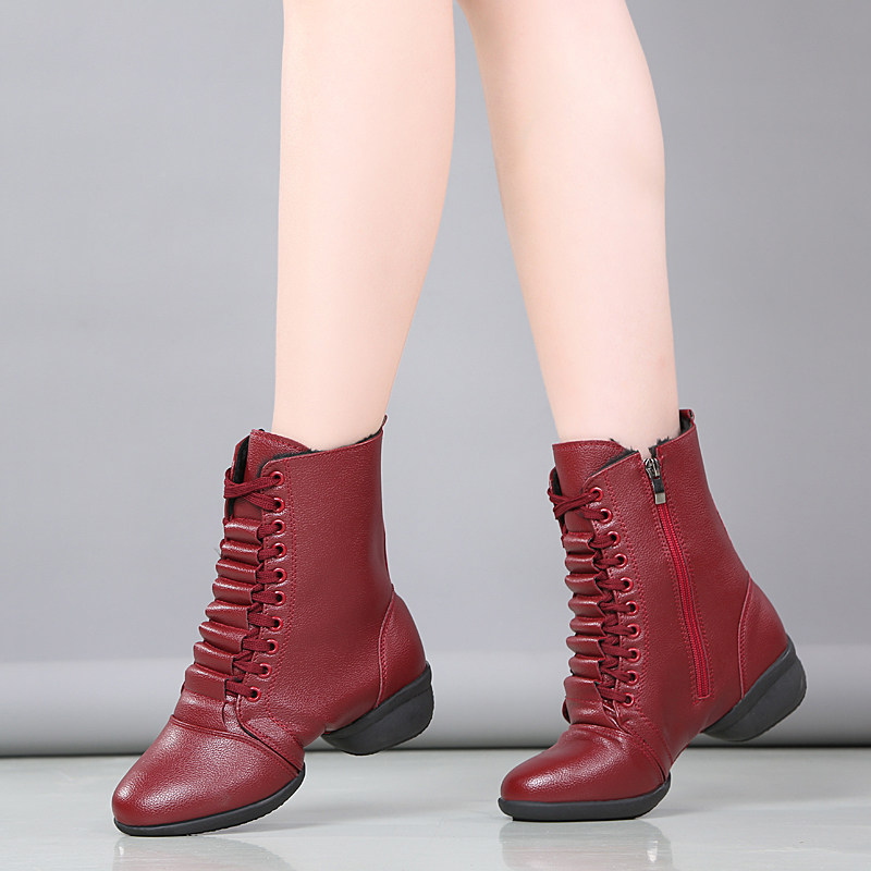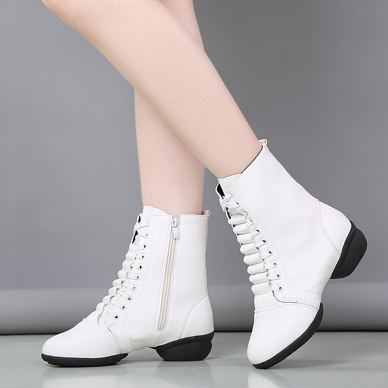 White high-top dance shoes women's soft bottom autumn and winter plus velvet square dance shoes leather modern dance dance shoes sailor dance boots