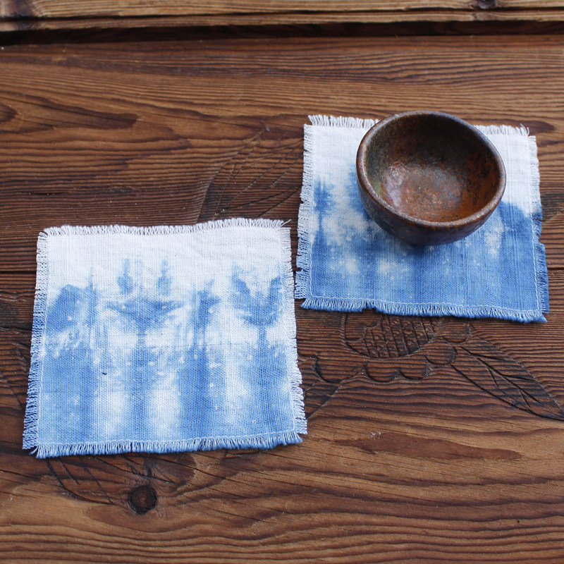 Lanyan handmade tie-dye coaster single layer hand-woven earthen cloth square heat insulation anti-scalding anti-slip tea ceremony fabric table decoration