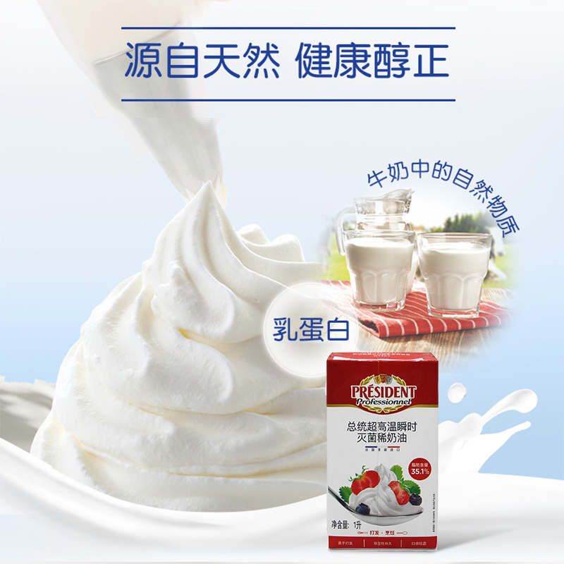 French Imports President Light Milk Oil 1 Litre L Cream Fresh Cream Animal Sex Rare Cream Cake Framed Baking Raw Material