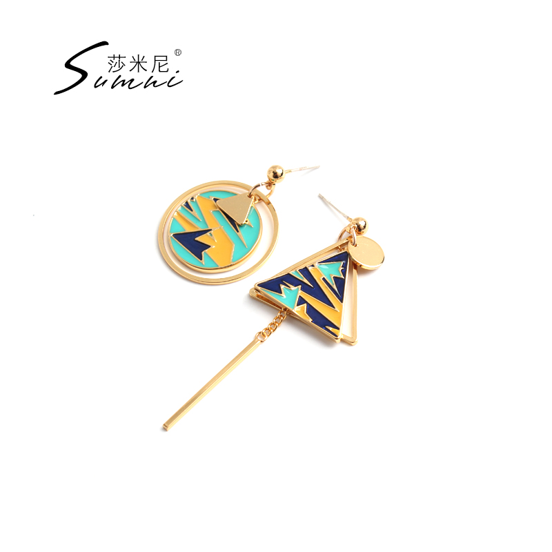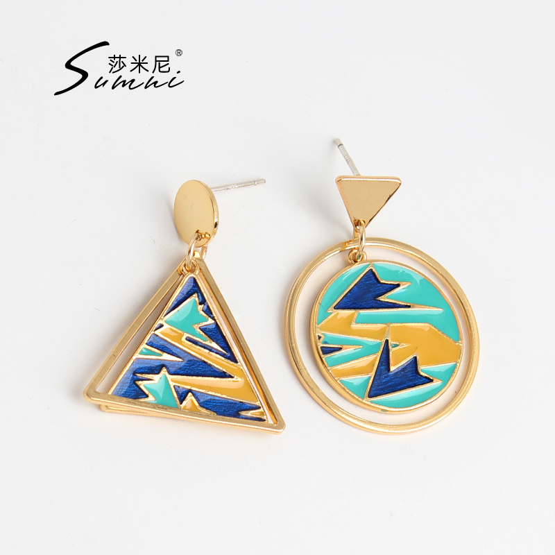 sumni Shamini European and American style exaggerated asymmetric art design enamel drop glaze geometric earrings earrings women