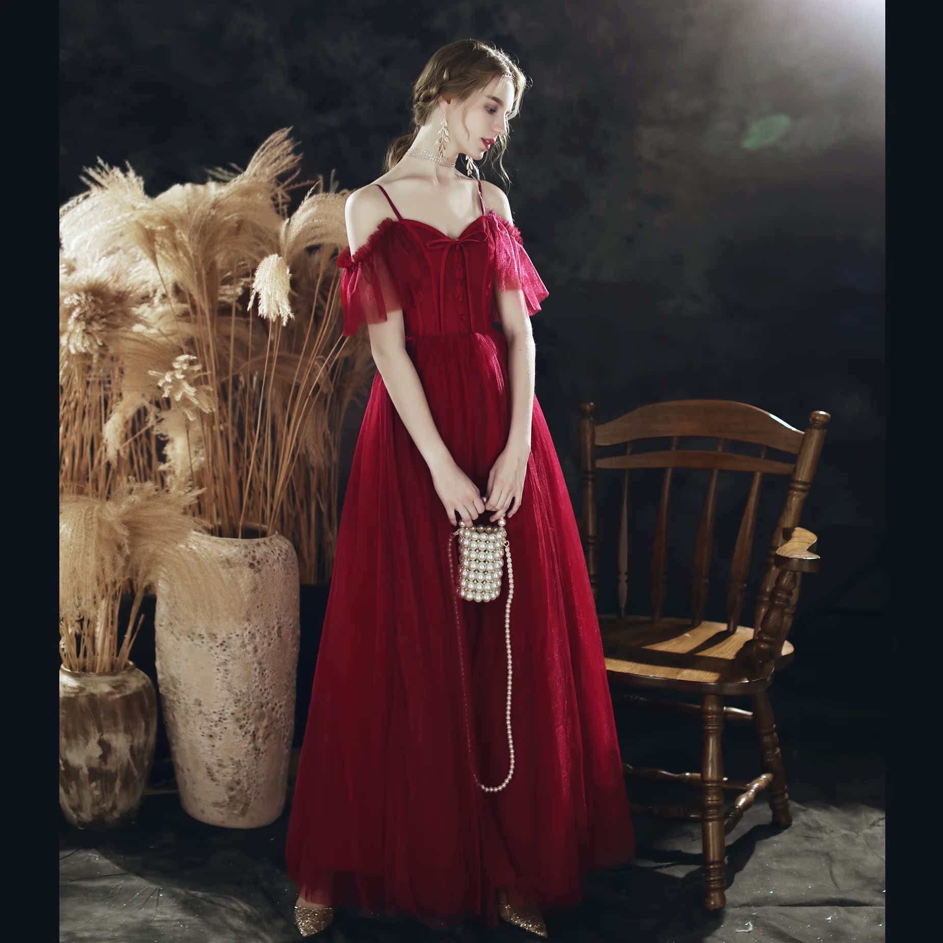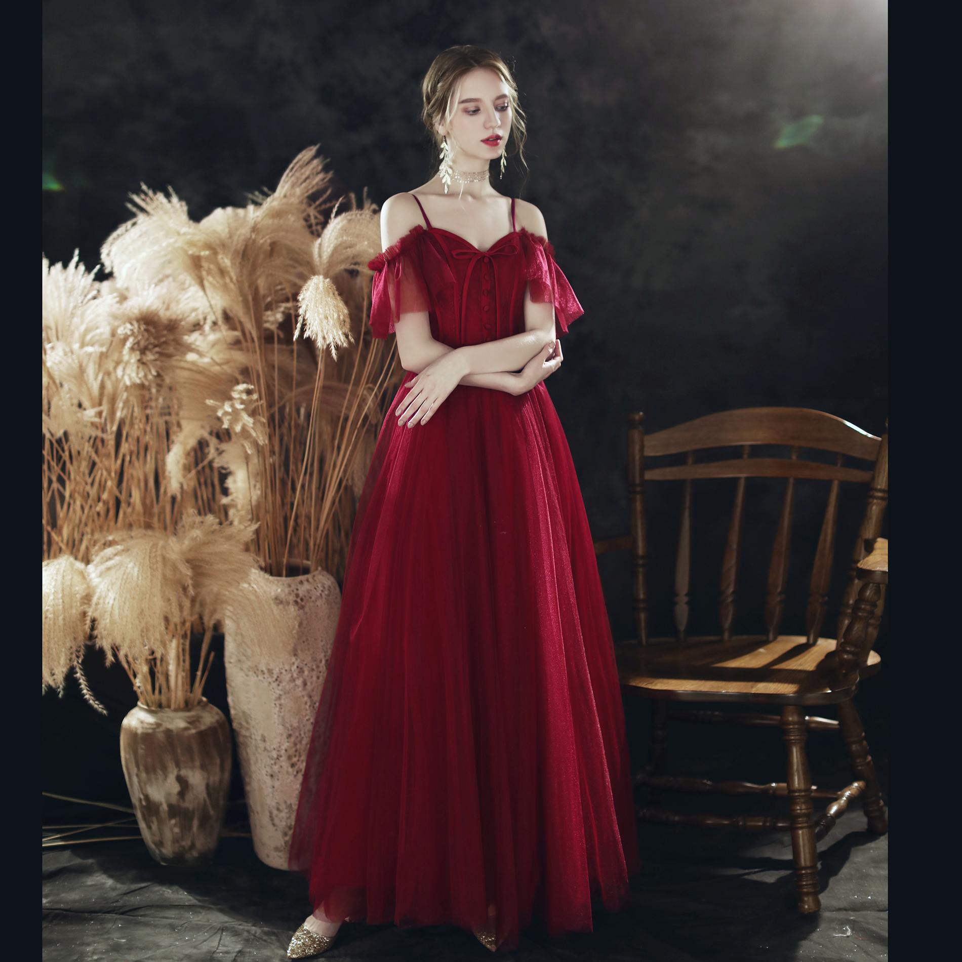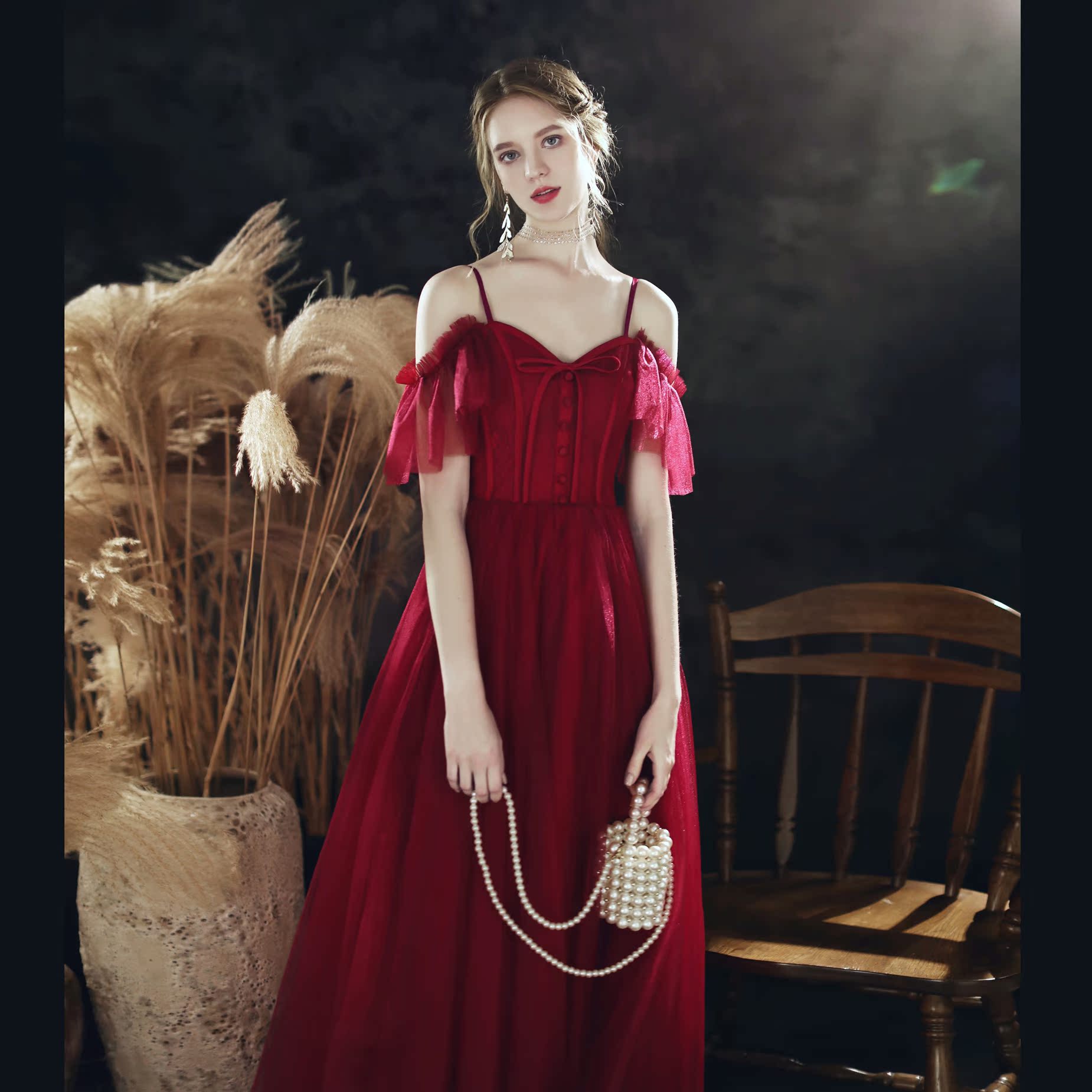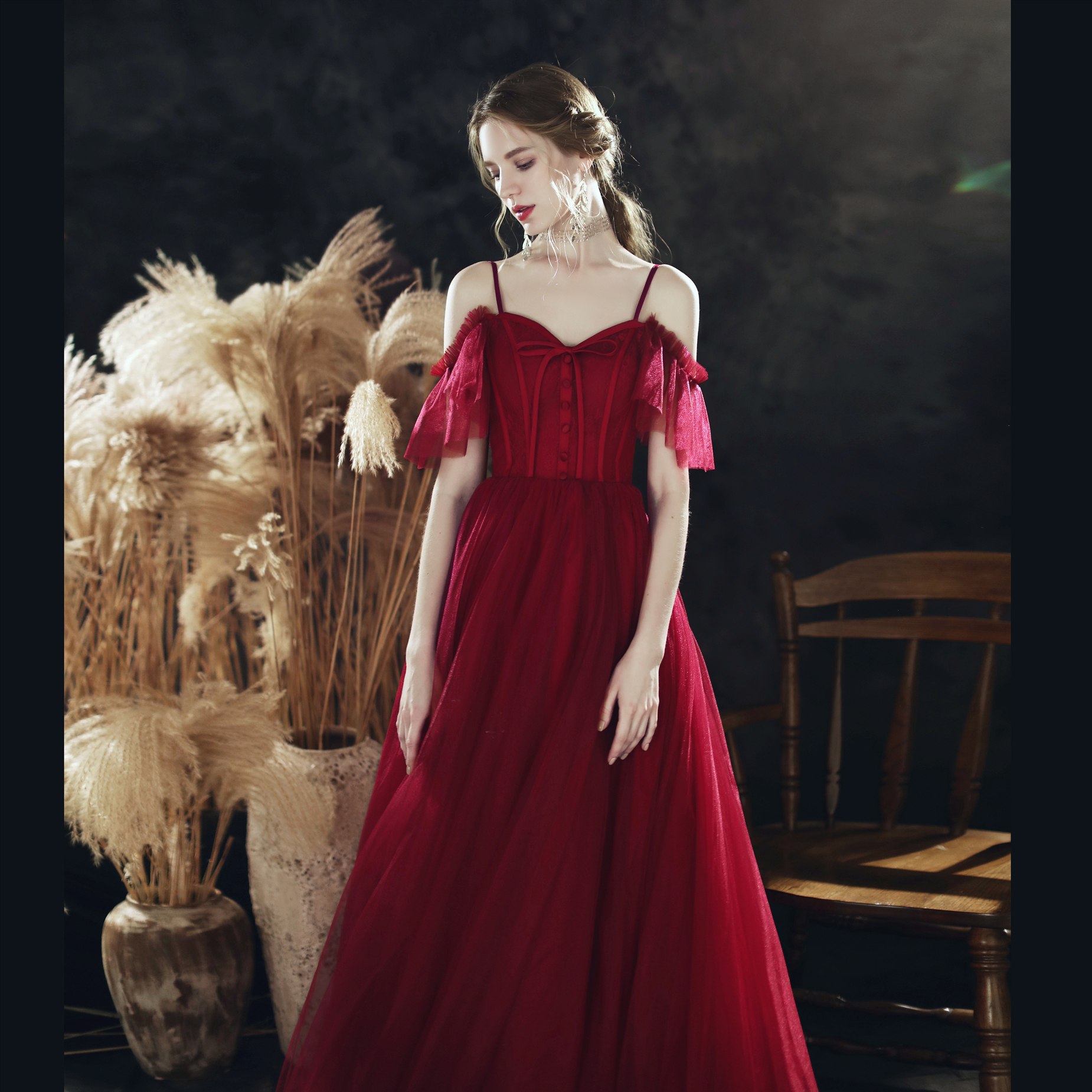 Toast dress bride 2022 new summer wedding wine red banquet dress suspenders small foreign temperament fairy - Taobao