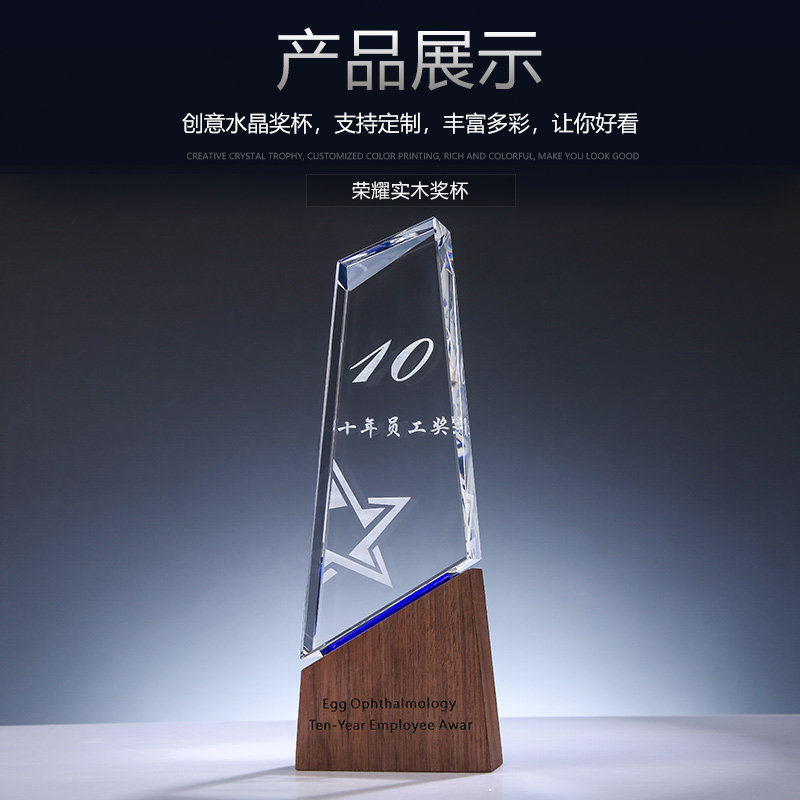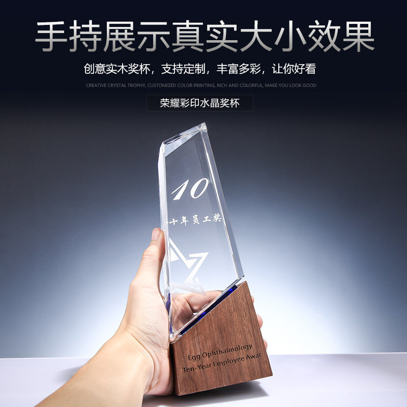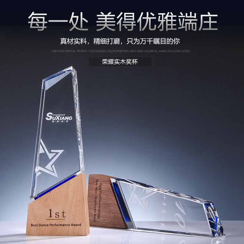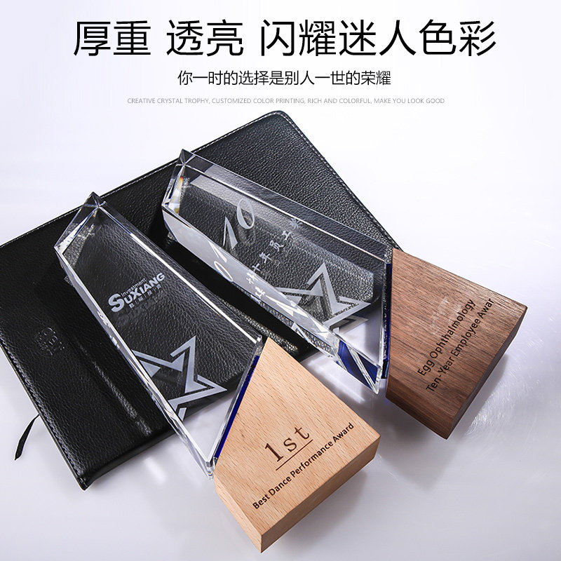 Trophies custom set as authorization card to make wood wood crystal Inner engraving word company Corporate annual meeting awards