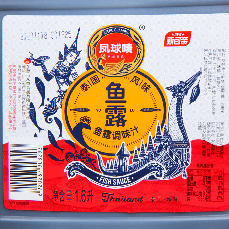 Fengqiu Mark Original Sauce Fish Sauce 1.6L Seafood Sauce Chaoshan Seasoning Thai Flavor Korean Kimchi Special Shrimp Oil