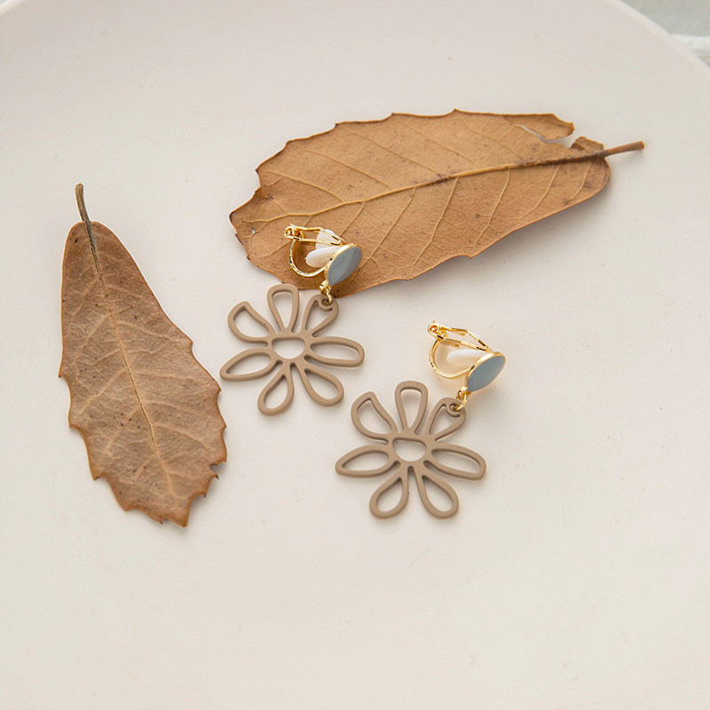 (107)Candy Brown Flower ear pins(107) Candy Brown Flower earless pierced ear clips